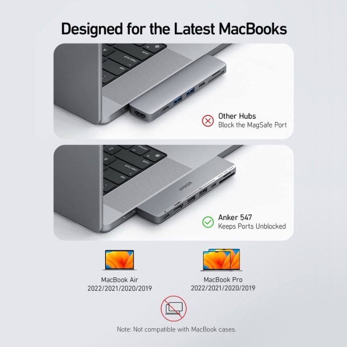 - Works with the latest MacBook Air and MacBook Pro, and is designed specially to avoid obstructing your MacBook’s MagSafe port.