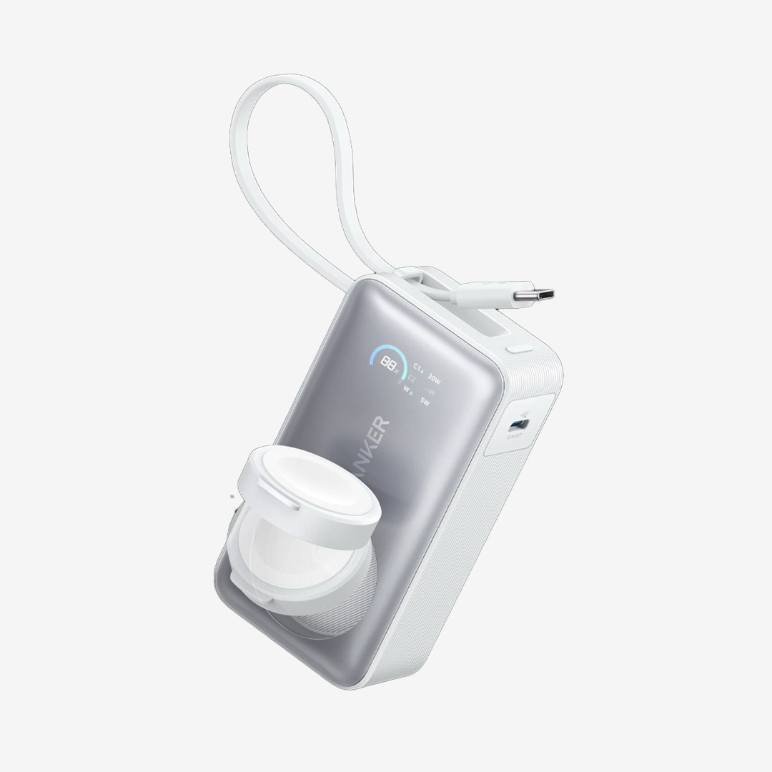 Experience seamless charging with the Anker MagGo 10K 35W USB-C Power Bank in sleek white, model A1657H21.