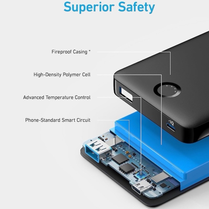 - Extremely Safe to Use: With a fireproof casing*, high-density polymer cell, smart circuit, and temperature control, this power bank provides reliable protection while charging your devices.