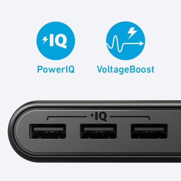 - Comes with 3 USB output ports equipped with Anker’s PowerIQ, and Voltage Boost technology to ensure high-speed charging for three devices simultaneously