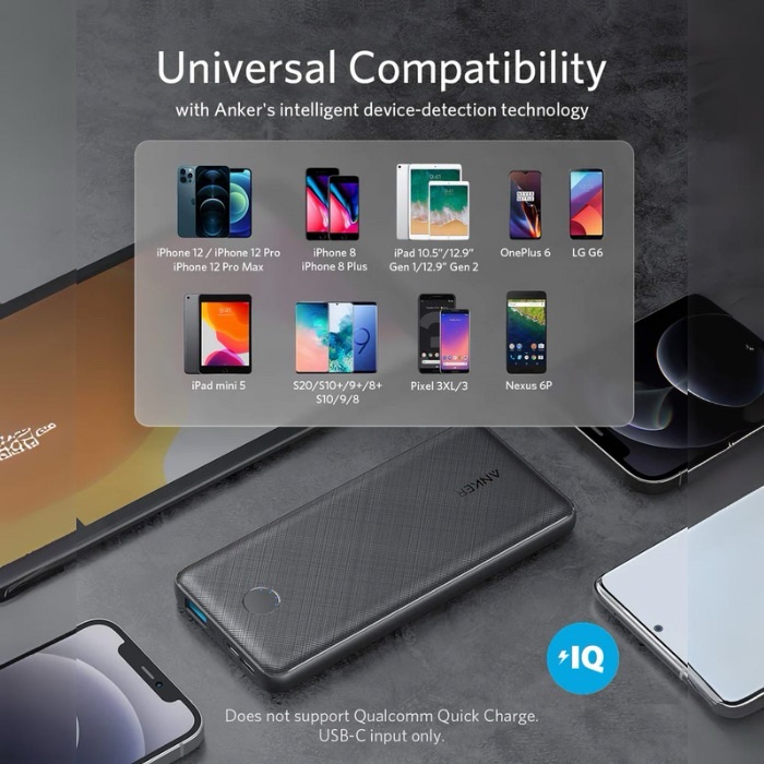 - Slim Size, Big Power:One of the slimmest and lightest 10,000mAh portable chargers on the market. Provides 2.25 charges for iPhone 12, 1.6 charges for Galaxy S20 and 1.2 charges for iPad mini 5.The two input ports may not be used at the same time. The USB-C input port has no output function.