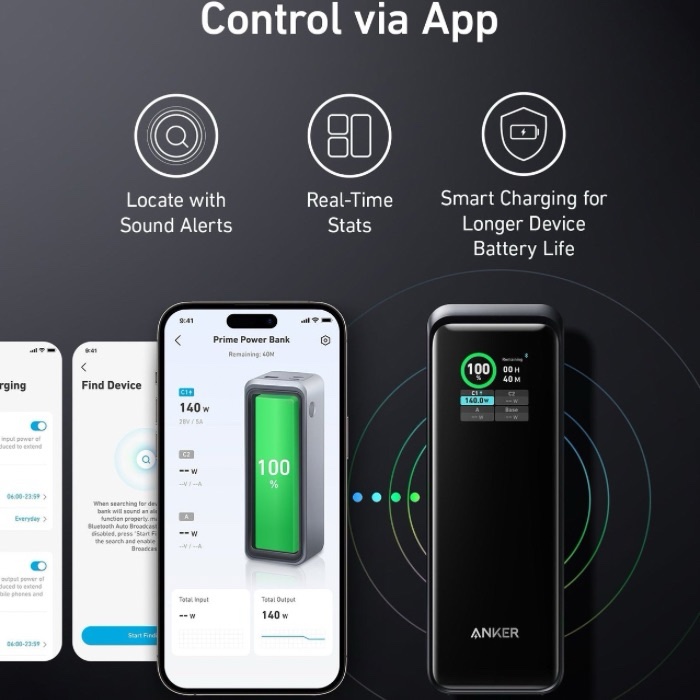 - Intuitive Smart App: Use the Anker app to quickly locate your power bank with sound alerts, access real-time stats, and optimize device battery life with smart charging.