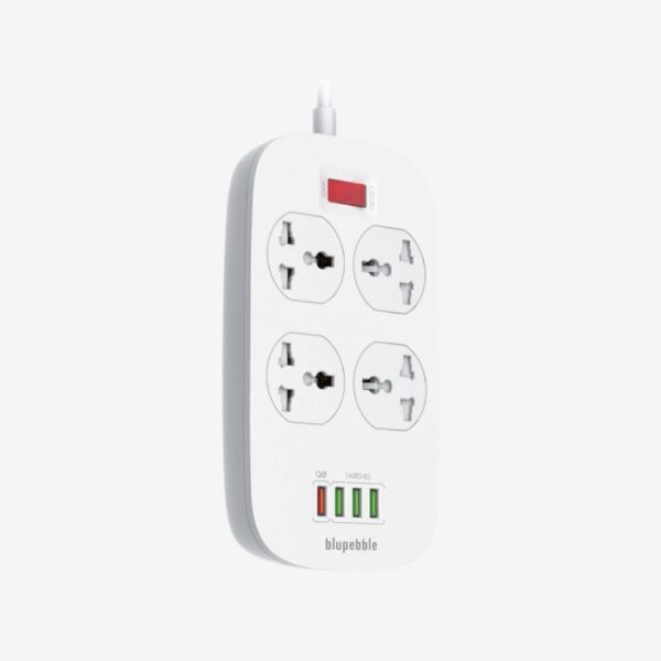 Blupebble Surge Protection 4 Universal Socket with 3 USB Port + QC3.0 – White