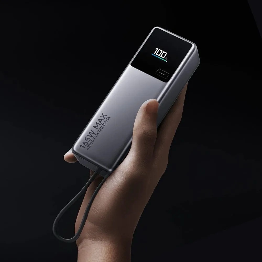 Its 90W self-charging capability means the power bank can recharge up to 75% in just 15 minutes, ensuring minimal downtime. The compact design, complete with an integrated cable that doubles as a carrying loop, makes it ideal for travel. A smart color display provides real-time battery status, and multiple safety features, including temperature control and overcharge protection, ensure safe operation.