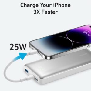 A powerful magnetic field (13 N holding force) ensures that the power bank securely attaches to compatible iPhone 12 series smartphones and newer. Once docked, wireless charging starts automatically at up to 7.5 W without any manual adjustment.